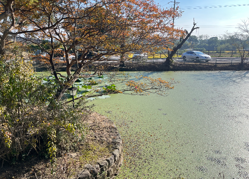 향교를 나오니 바로 연못이다.
