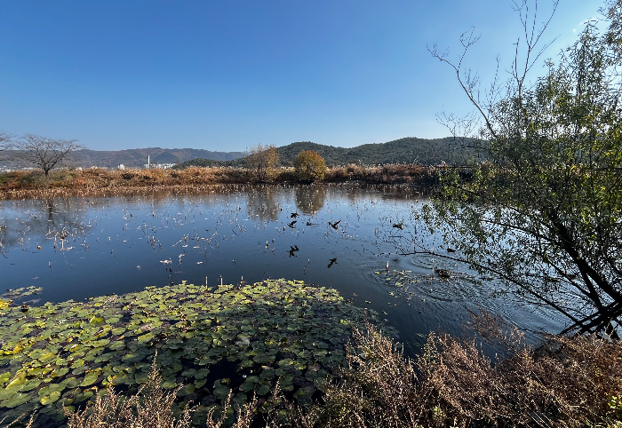 길 왼쪽으로 펼쳐지는 경상북도 산림환경연구원을 구경하면서